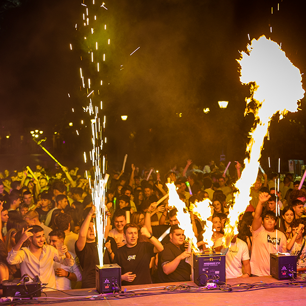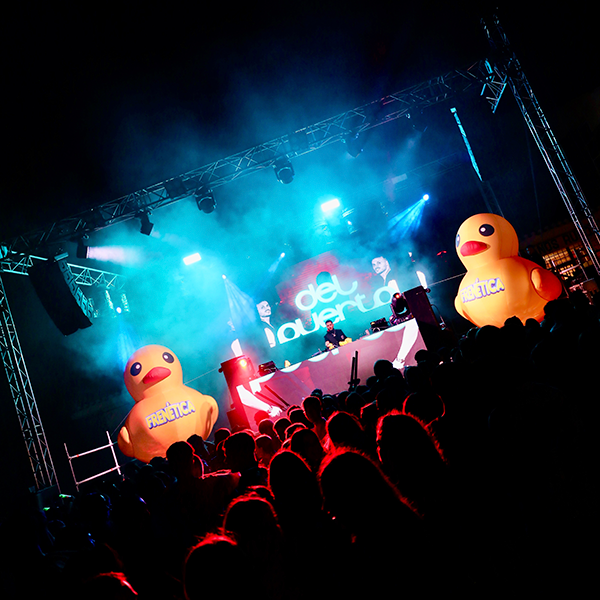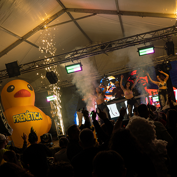 Conocida como la fiesta de los patos de goma, cada edición sorprende con una puesta en escena descomunal: decoración hinchable gigante, palos leds que iluminan la pista, kilos y kilos de confeti, pistolas de CO₂ y máquinas de fuego frío que elevan la experiencia a lo más alto.
